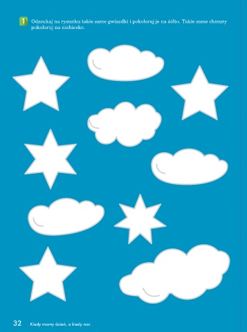 - Pokoloruj zgodnie z instrukcją, takie same gwiazdki pokoloruj na żółto, takie same chmury pokoloruj na niebiesko