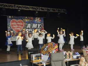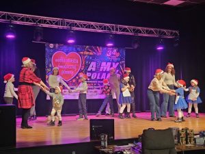 Podczas spotkania w Domu Kultury przedszkolaki pokazały swoje występy artystyczne. W występach, spontanicznie, udział wzięli również rodzice z grupy Misie. Takie spotkania to dobra zabawa i możliwość włączenia się w akcję pomagania innym.