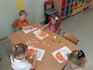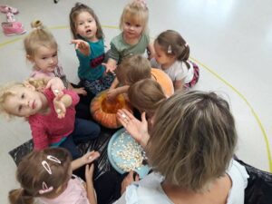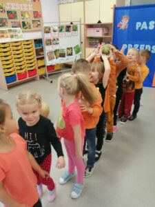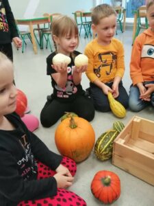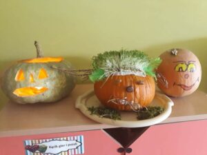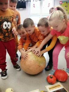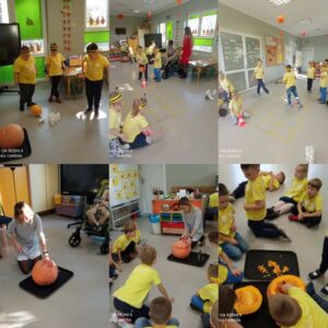 30 października obchodziliśmy w naszym przedszkolu Dzień Dyni. Ten dzień wypełniony był licznymi zabawami integracyjnymi. Święto Dyni rozpoczęliśmy od oglądania bajki edukacyjnej – 'Dynia pod ochroną’, dzięki której dzieci dowiedziały się, że dynia jest bardzo zdrowym warzywem oraz gdzie i w jakich warunkach ona rośnie. Dzieci z poszczególnych grup przystąpiły do dyniowych zawodów- dyniowe kręgle, odbył się również slalom dyniowy, a na zakończenie dzieciaki przystąpiły do wykonania dyniowych stworków. Dzieci wykazały się ogromną kreatywnością i jednocześnie świetnie się bawiły 'Dzień Dyni’ dla naszych przedszkolaków był wyjątkowy, pozwolił im zapoznać się z różnorodnością dyń oraz wzbogacił ich wiedzę na ich temat.