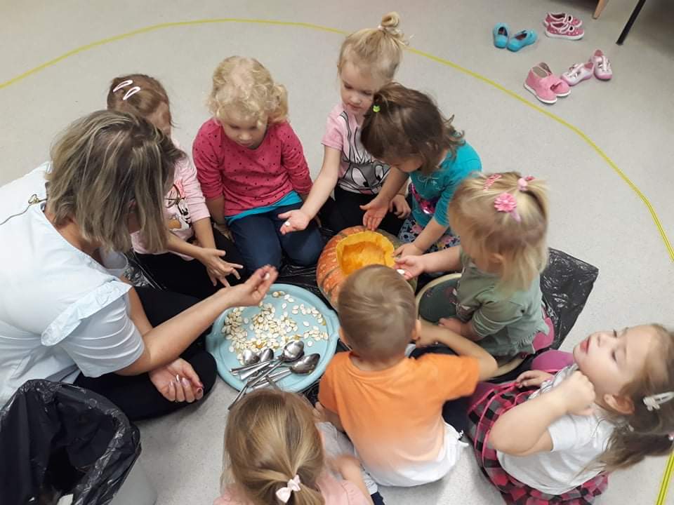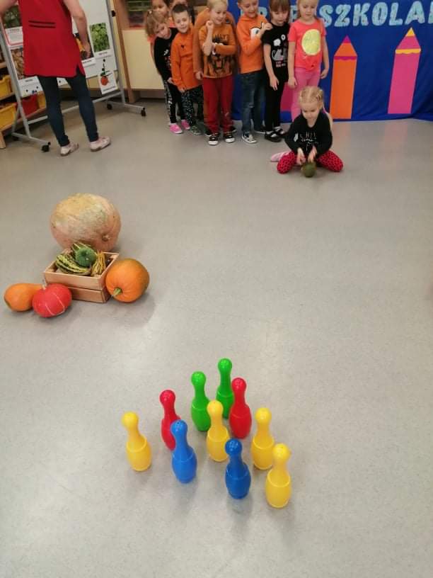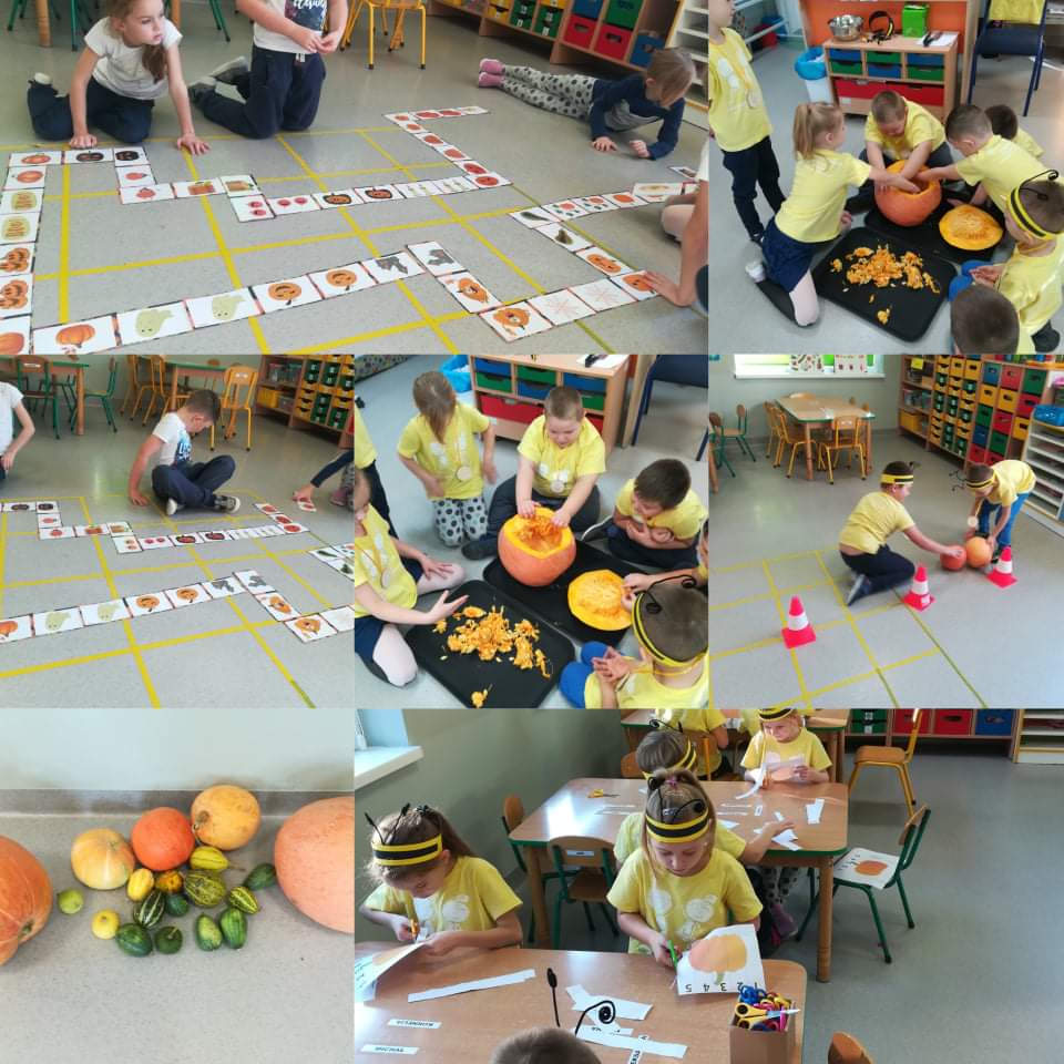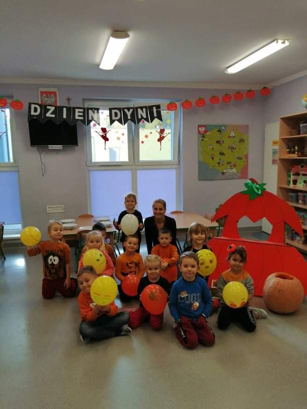 30 października obchodziliśmy w naszym przedszkolu Dzień Dyni. Ten dzień wypełniony był licznymi zabawami integracyjnymi. Święto Dyni rozpoczęliśmy od oglądania bajki edukacyjnej – 'Dynia pod ochroną’, dzięki której dzieci dowiedziały się, że dynia jest bardzo zdrowym warzywem oraz gdzie i w jakich warunkach ona rośnie. Dzieci z poszczególnych grup przystąpiły do dyniowych zawodów- dyniowe kręgle, odbył się również slalom dyniowy, a na zakończenie dzieciaki przystąpiły do wykonania dyniowych stworków. Dzieci wykazały się ogromną kreatywnością i jednocześnie świetnie się bawiły 'Dzień Dyni’ dla naszych przedszkolaków był wyjątkowy, pozwolił im zapoznać się z różnorodnością dyń oraz wzbogacił ich wiedzę na ich temat.
