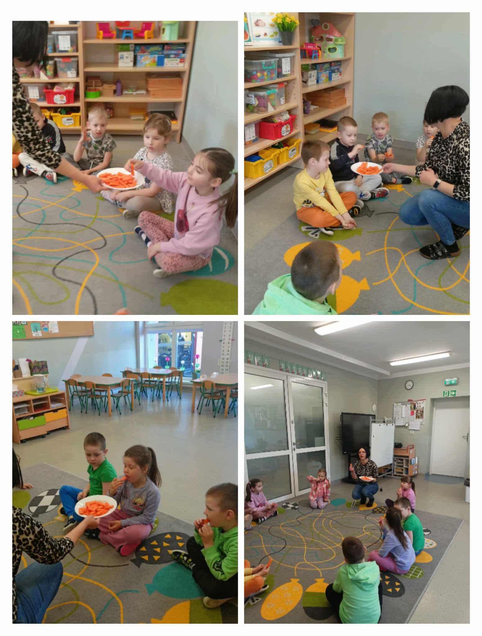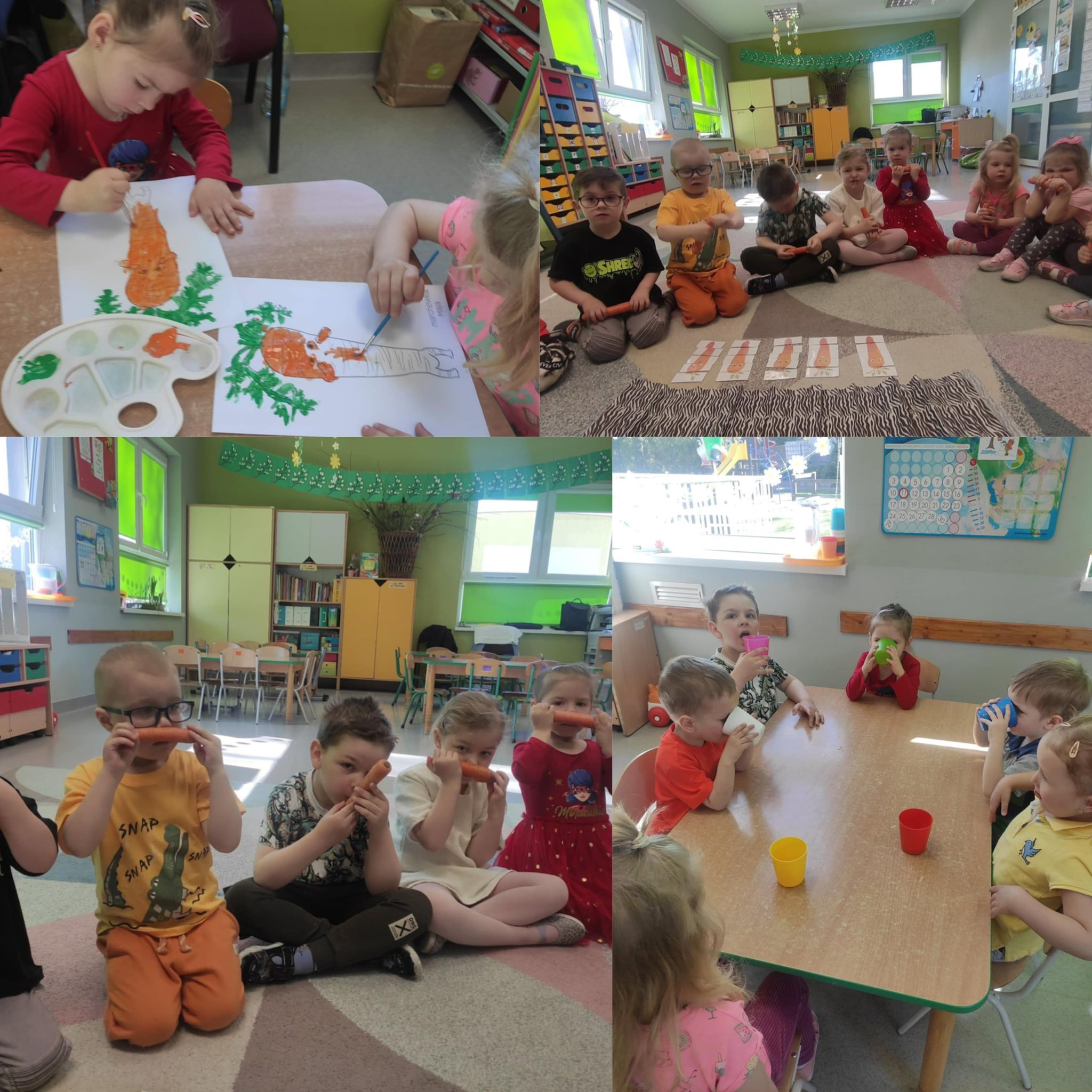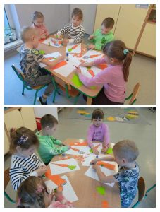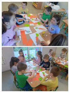 Dnia 4 kwietnia grupa ,,Biedronki” i „Pszczółki”obchodziła Dzień Marchewki. Celem zajęć było utrwalenie wiedzy o warzywach i zdrowym stylu życia. Dzieci miały możliwość zdegustowania pysznej surowej marchewki, a także wypić pyszny sok.