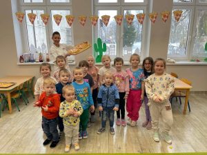 Spotkanie idealnie wpisało się w Dzień Pizzy – dzieci wspólnie z panią Moniką i Renatą przygotowały pyszne pizze i poznały kulisy pracy kucharza. Było smacznie, wesoło i bardzo inspirująco! 😄🍕
