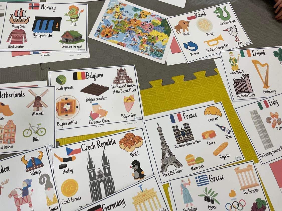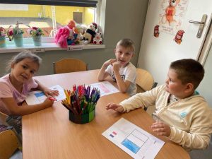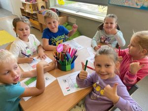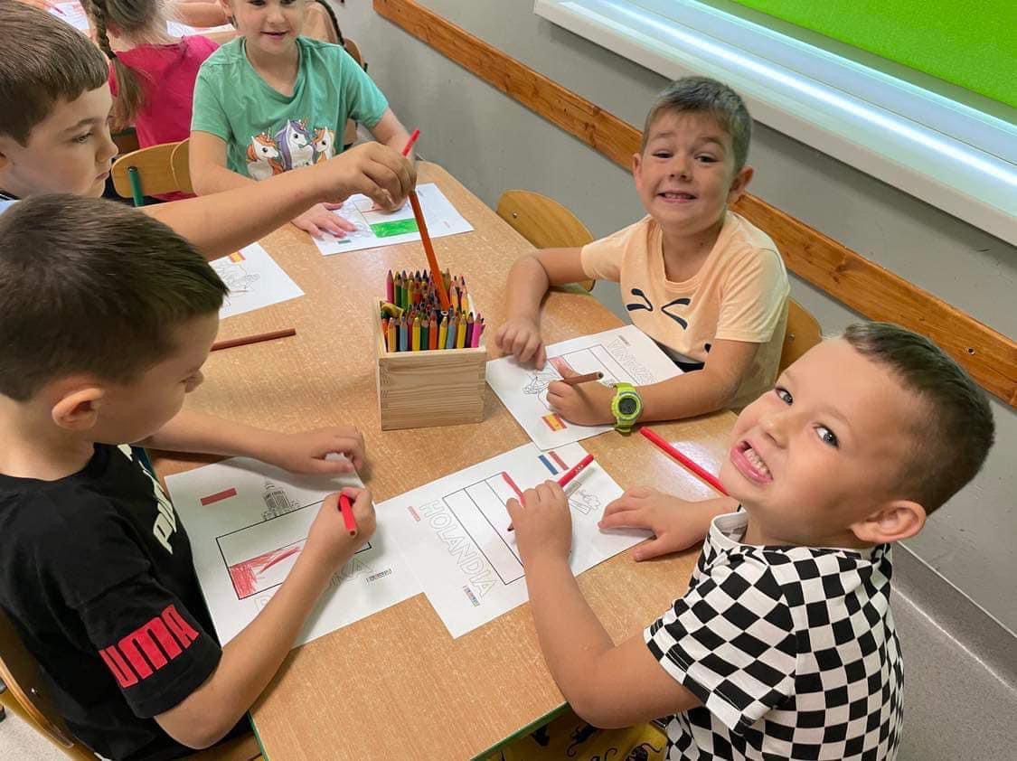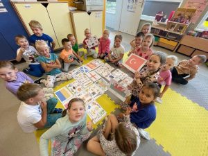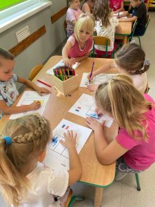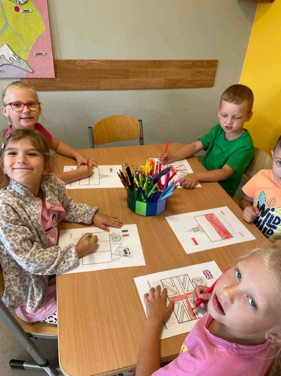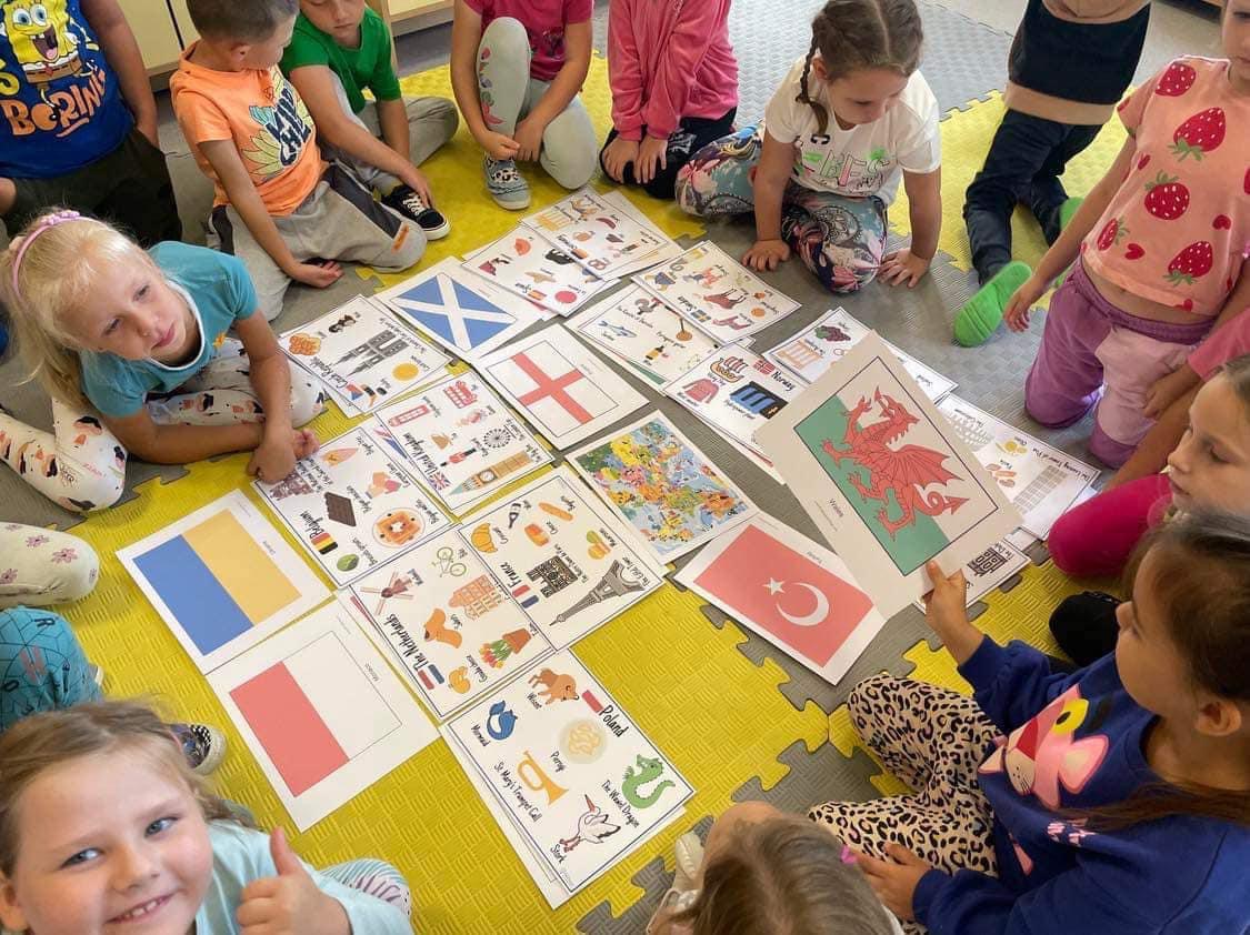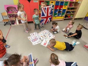 Dzieci na j臋zyku angielskim z Pani膮 Anit膮 zrealizowa艂y temat Europejski Dzie艅 J臋zyk贸w Obcych. Zapozna艂y si臋 z flagami r贸偶nych kraj贸w europejskich, pozna艂y ich symbole, oraz wys艂ucha艂y nagrania z powitaniem w r贸偶nych j臋zykach. 馃嚙馃嚜馃嚞馃嚙馃嚞馃嚪馃嚜馃嚫