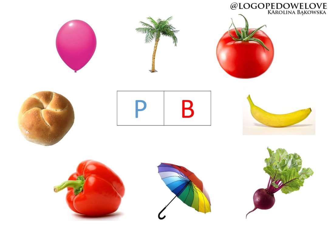 Nazwij wszystkie obrazki dookoła liter, a zadaniem dziecka jest wskazanie, który obrazek na którą literę- głoskę się zaczyna. Ćwiczymy słuch oraz rozróżnianie głosek dźwięcznej i bezdźwięcznej.