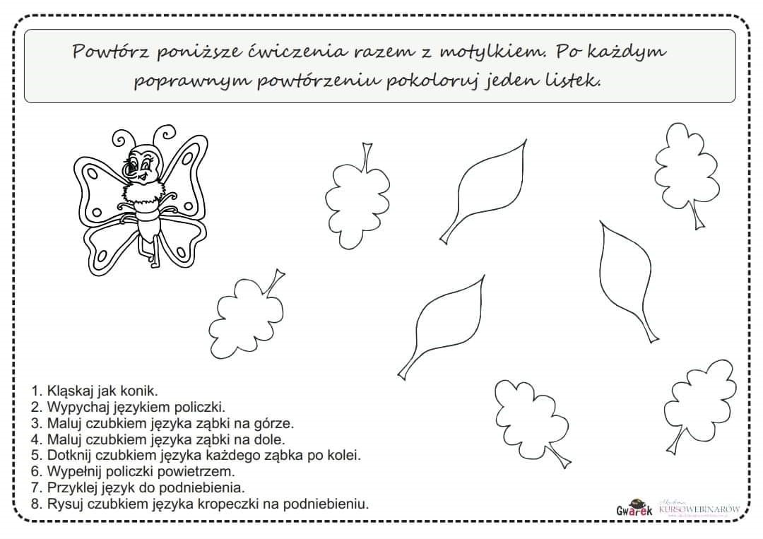 1.Poćwiczymy najpierw narządy aparatu artykulacyjnego. Przy wykonywaniu tych ćwiczeń przydatne będzie lusterko.