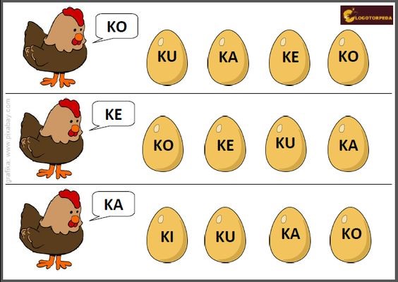 4.Ćwiczenie – powtórz każdą sylabę na jajku , a następnie odszukaj w szeregu tę sylabę, którą wymawia kura na początku rzędu. Powodzenia.
