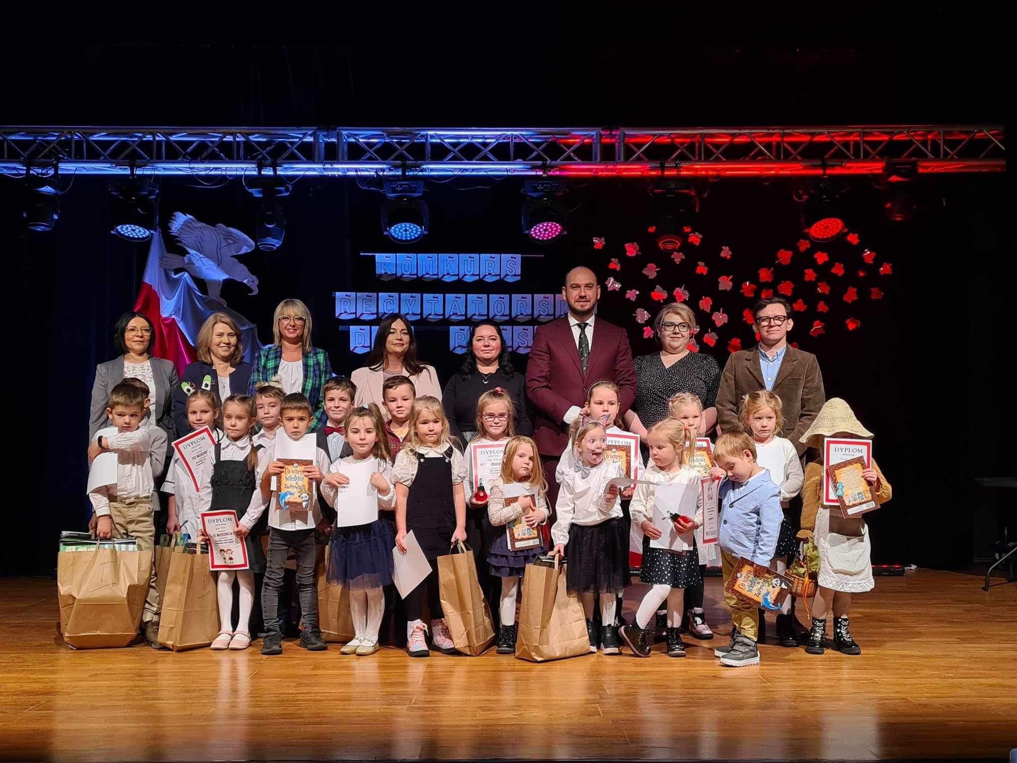 W piątek, dnia 24 listopada 2023 roku w Gminnym Ośrodku Kultury w Damasławku odbył się III konkurs recytatorski pt. „Dla Polski – polscy poeci o przyrodzie i zwierzętach”. Organizatorem konkursu było Publiczne Przedszkole w Damasławku. Konkurs odbył się w ramach Narodowego Programu Rozwoju Czytelnictwa na lata 2021-2025. W tym roku celem konkursu było przede wszystkim popularyzowanie poezji opiewającej piękno naszej Ojczyzny, rozbudzanie i rozwijanie zainteresowań poezją o przyrodzie i zwierzętach oraz rozwijanie recytatorskich i aktorskich uzdolnień dzieci. Konkurs odbył się w dwóch etapach: wewnętrznym, każda grupa i klasa wyłaniała dwóch reprezentantów do etapu zewnętrznego. Ostatecznie do II etapu przystąpiło 19 dzieci. Jury w składzie: Cyprian Wieczorek – Wójt Gminy Damasławek, dyrektor Gminnego Ośrodka Kultury w Damasławku – Pan Maciej Jerzakowski, kierownik świetlicy Zespołu Szkół Powszechnych w Damasławku – Pani Aneta Kaiser, przewodnicząca Rady Rodziców Publicznego Przedszkola w Damasławku – Pani Paulina Kaczmarek – Rossa oraz dyrektor Publicznego Przedszkola w Damasławku – Pani Marta Imbiorowicz miało bardzo dużo pracy podczas przyznawania miejsc. Przyznano następujące miejsca w trzech kategoriach wiekowych: