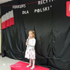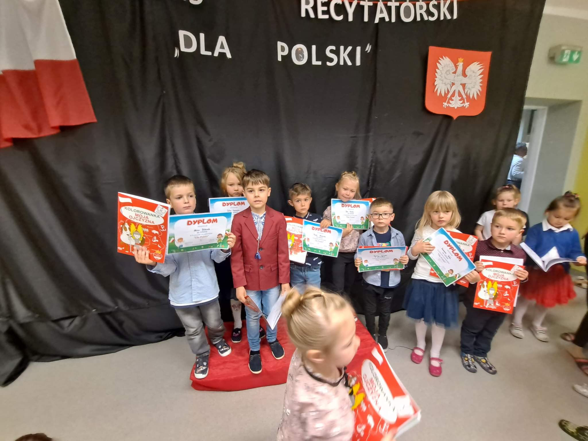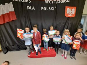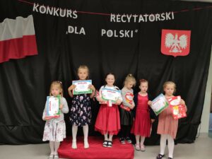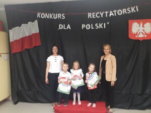 Dnia 27 maja 2022 r. w Publicznym Przedszkolu w Damasławku odbył sie konkurs recytatorski „Dla Polski”. Celem konkursu było pielęgnowanie postaw patriotycznych oraz rozwijanie umiejętności recytatorskich i autorskich dzieci. Do konkursu przystąpiło 27 uczestników. Jury w składzie: Pani Dyrektor Przedszkola – Bernadeta Matusiak, Pani Agnieszka Furmaniak- inspektor do spraw oświaty i sportu, oraz Pani Aneta Kaiser-kierownik świetlicy w ZSP w Damasławku, miało dużo pracy podczas przyznawania miejsc. Wszystkim uczestnikom dziękujemy za udział i serdecznie gratulujemy.
