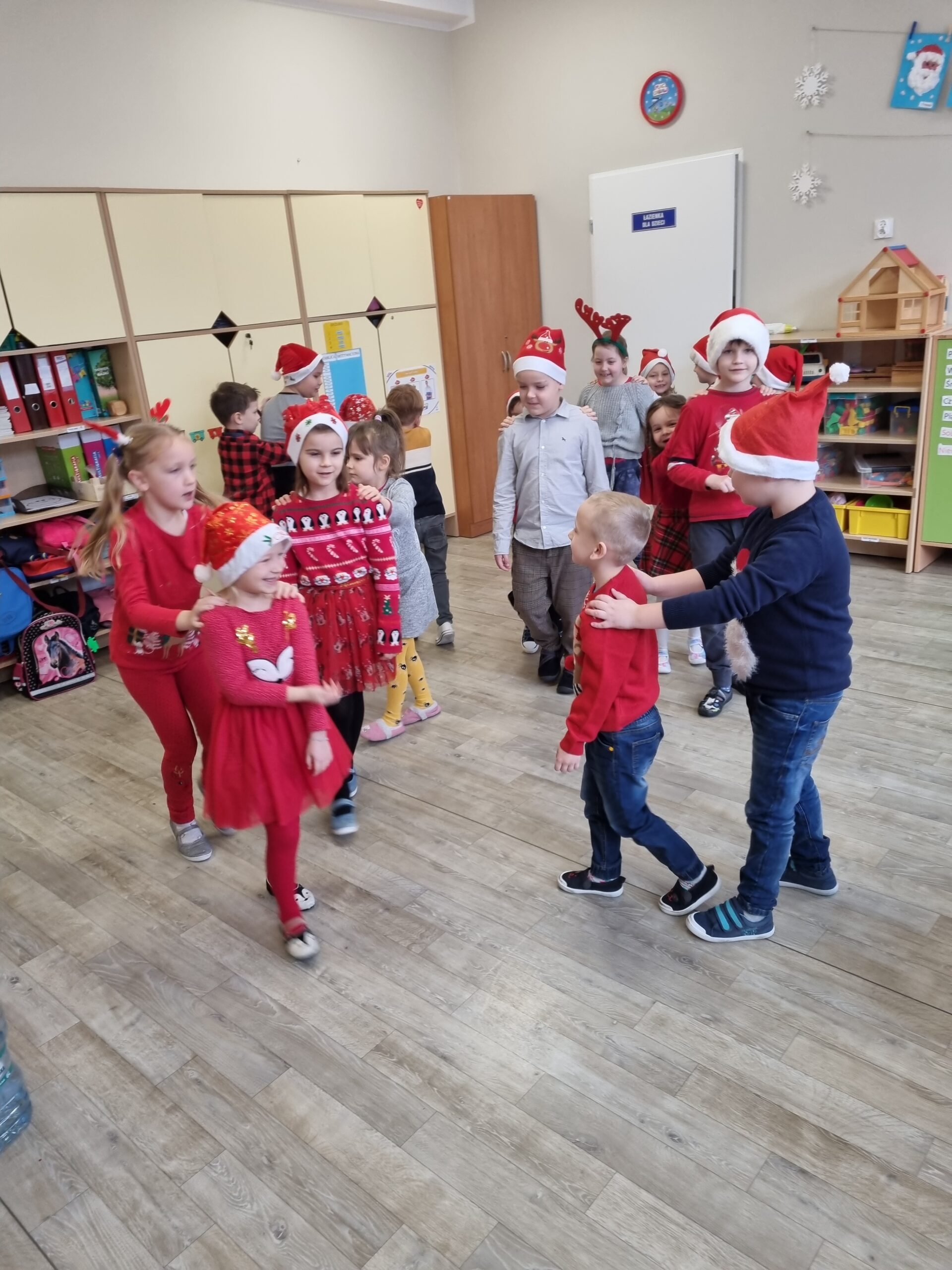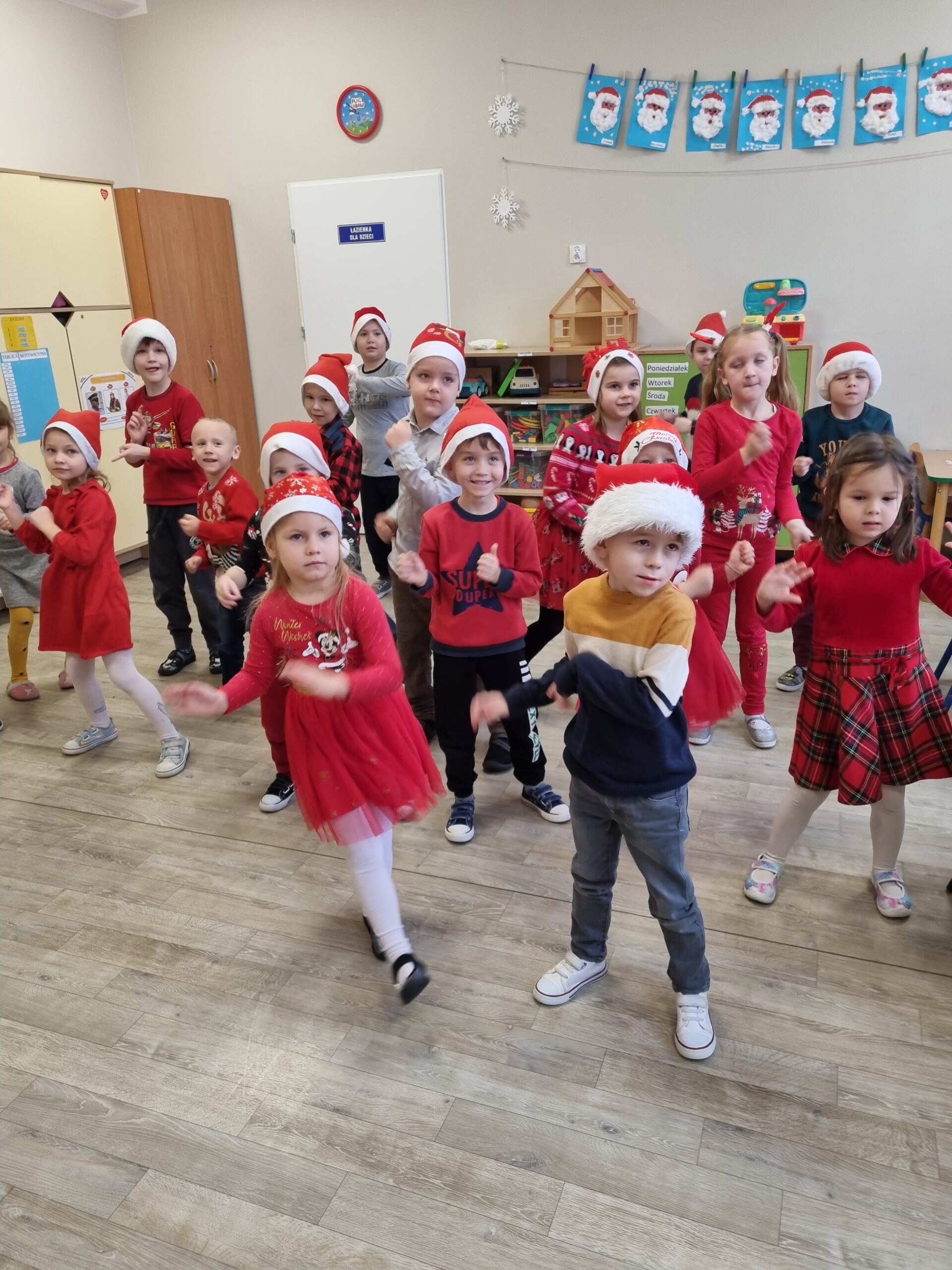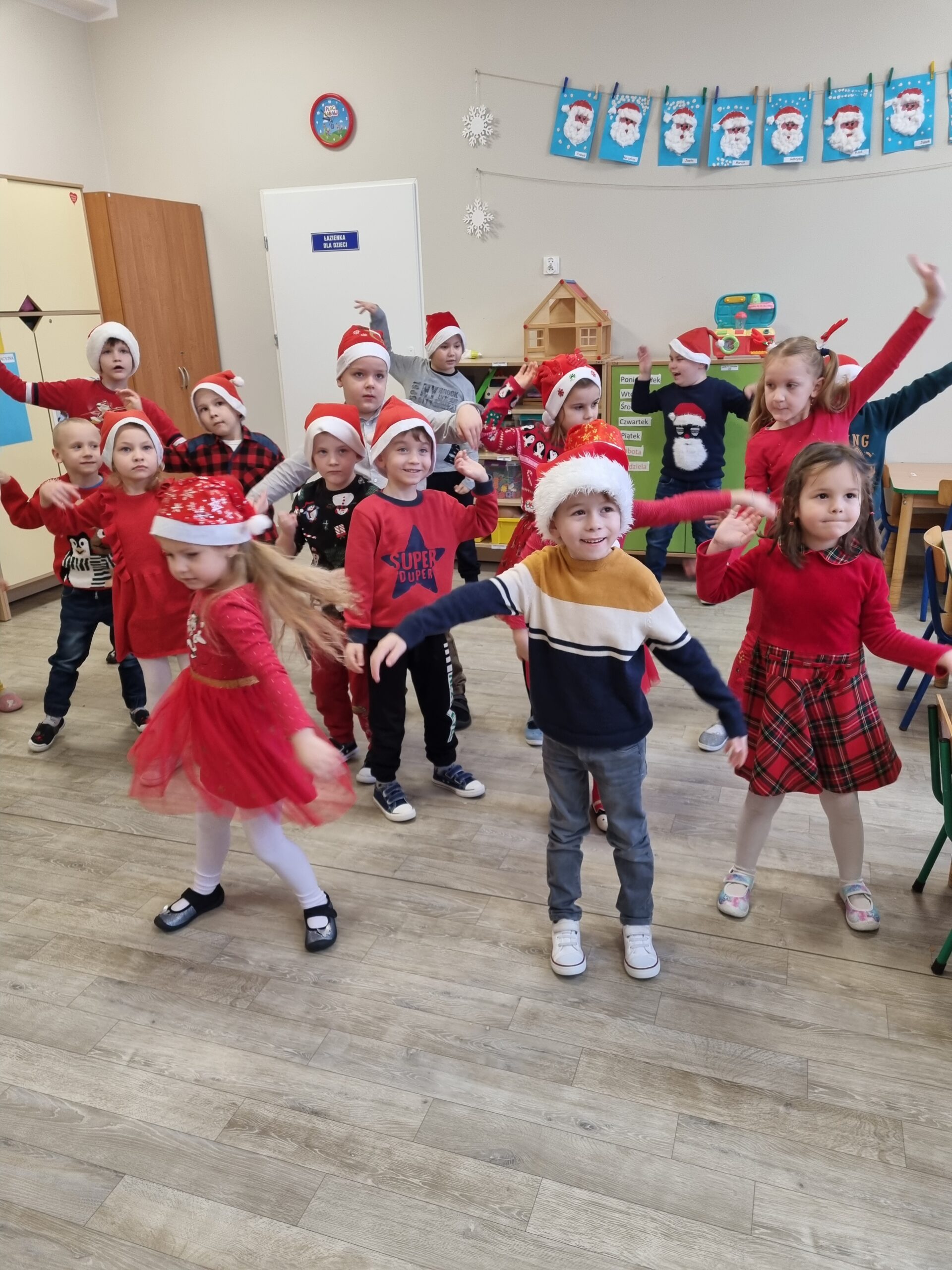 6 grudnia nasze przedszkole odwiedził długo wyczekiwany gość. Dzieci pięknie ubrane w czerwone stroje i czapeczki czekały na Świętego Mikołaja, niestety nie udało się go spotkać. Słoneczka i Sówki jednak nie były bardzo zawiedzione, ponieważ Mikołaj zostawił im wielki czerwony wór z prezentami. Dzieci z błyskiem w oku odbierały swoje upominki. Ten mikołajkowy dzień minął nam w miłej i radosnej atmosferze 🎅