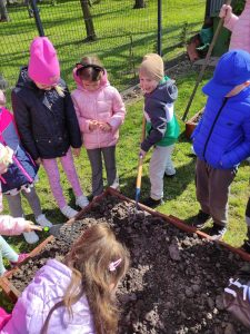 Dziękujemy Radzie Rodziców za ufundowanie skrzynek i części narzędzi, a Gmina Damasławek za dostarczenie ziemi.
