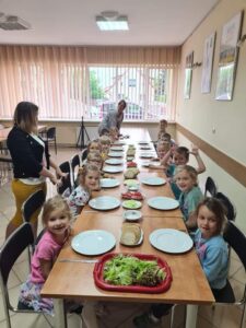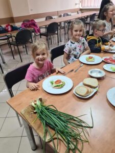 20 czerwca dzieci z grupy Kotki zamieniły się w małych kucharzy i samodzielnie przygotowywali kanapki z produktów, które wiosną zasiały i sadziły w Eko-ogródku przy Domu Kultury w Damasławku. Przedszkolaki samodzielnie smarowały pieczywo masłem, a następnie układały na kanapkę wybrane przez siebie produkty, tworząc ciekawe kompozycje. Podczas robienia kanapek przedszkolaki kształciły odpowiednie nawyki żywieniowe, rozwijały kreatywność i wyobraźnię oraz dbałość o higienę. Wszystkie kanapki wyglądały smakowite .