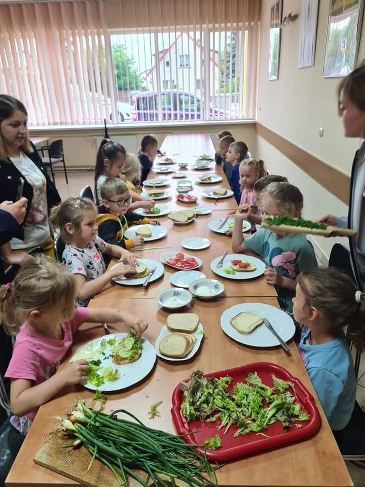 20 czerwca dzieci z grupy Kotki zamieniły się w małych kucharzy i samodzielnie przygotowywali kanapki z produktów, które wiosną zasiały i sadziły w Eko-ogródku przy Domu Kultury w Damasławku. Przedszkolaki samodzielnie smarowały pieczywo masłem, a następnie układały na kanapkę wybrane przez siebie produkty, tworząc ciekawe kompozycje. Podczas robienia kanapek przedszkolaki kształciły odpowiednie nawyki żywieniowe, rozwijały kreatywność i wyobraźnię oraz dbałość o higienę. Wszystkie kanapki wyglądały smakowite .