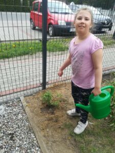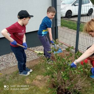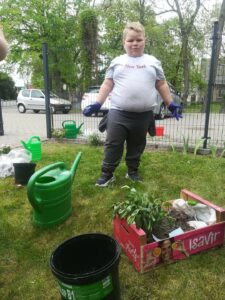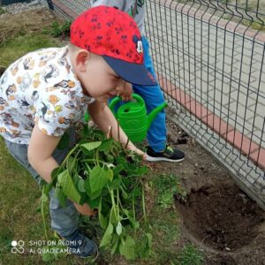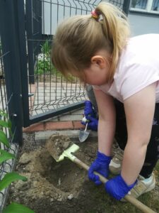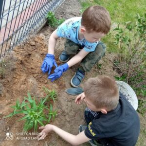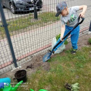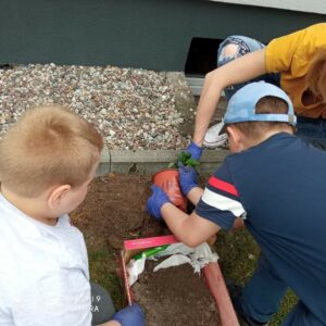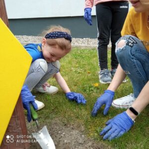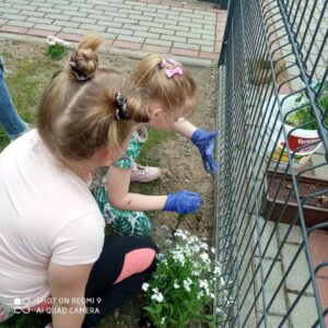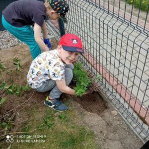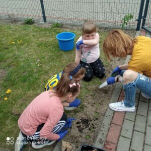 Grupa przedszkolna „Pszczółki” utworzyła na terenie przedszkola ogródek kwiatowy.