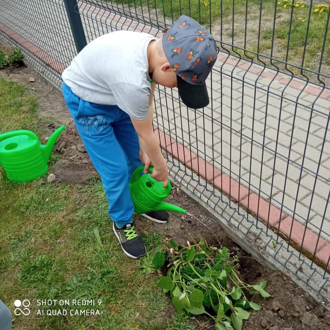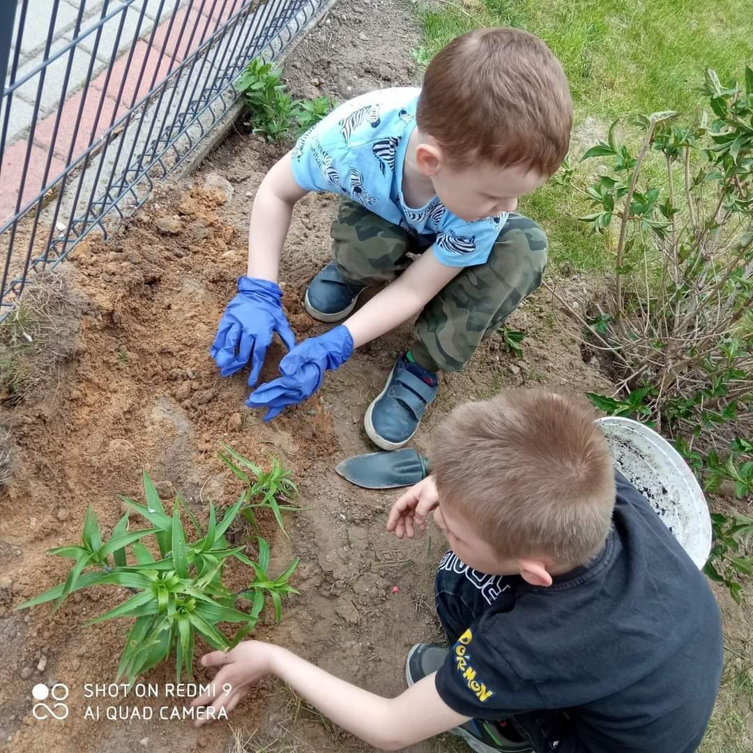 Mali ogrodnicy bardzo zaangażowali się w dostarczenie sadzonek i cebulek przeróżnych kwiatów. Podczas pogadanki wykazały się wielką wiedzą na temat sadzenia, siania i sposobów pielęgnacji roślin. Wszyscy bardzo chętnie pracowali. Teraz każdego dnia będziemy podlewać, pielęgnować, obserwować i czekać na pierwsze plony.