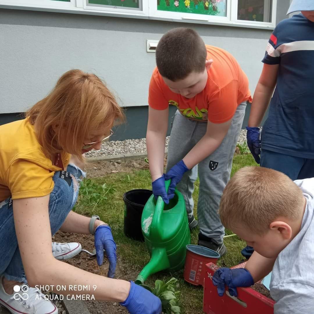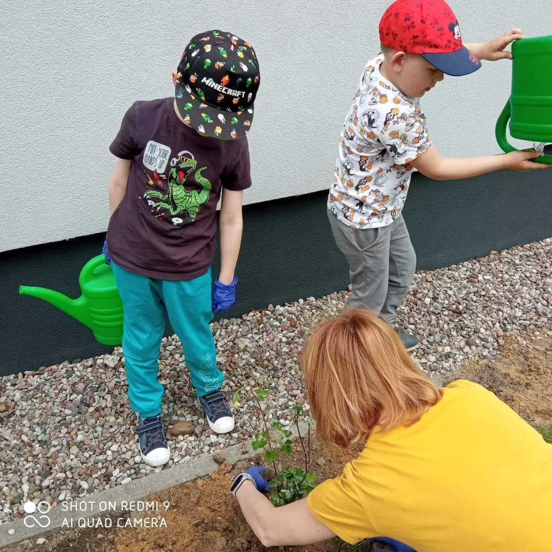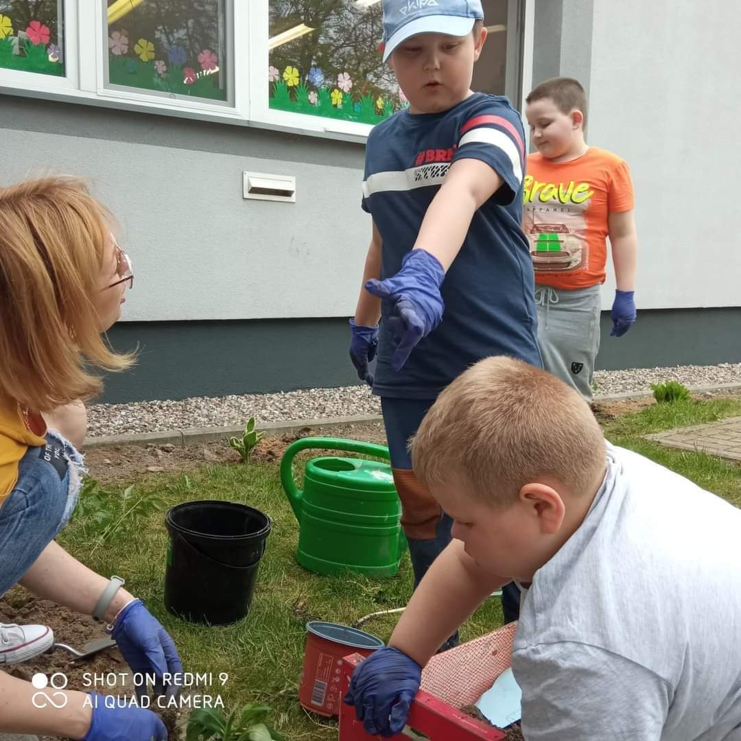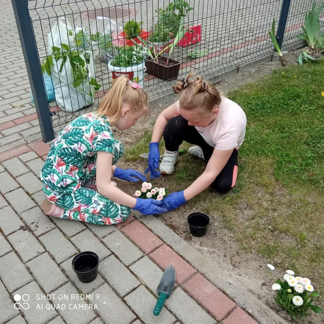 Grupa przedszkolna „Pszczółki” utworzyła na terenie przedszkola ogródek kwiatowy.