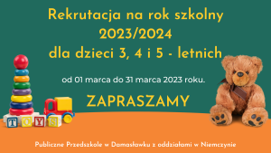 Rekrutacja do Publicznego Przedszkola w Damasławku na rok szkolny 2023-2024