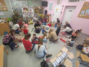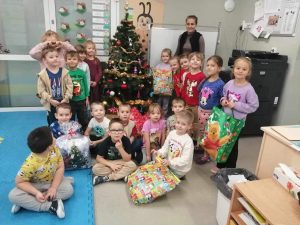Co roku nasze przedszkole organizuje przedświąteczne spotkania z rodzicami. W tym roku one również się odbyły w każdej z grup. Wraz z rodzicami wpadliśmy na pomysł wykonania prezentów świątecznych dla Dzieci i Młodzieży z Oddziału Onkologii Szpitala im. A. Jurasza w Bydgoszczy. Nasze przedszkolaki miały okazję nauczyć się sprawiania radości innym małymi rzeczami i niesienia pomocy potrzebującym. Mamy nadzieję, że te kocyki i poduszki umilą dzieciom czas świąt spędzony w szpitalu. Część prezentów będzie również rozdana dzieciom na oddziale psychiatrii dziecięcej w tym samym szpitalu.