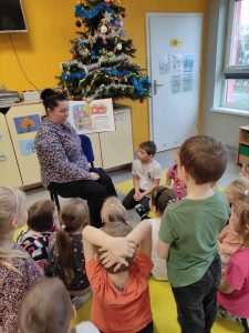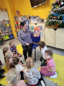 Wiemy jak bardzo literatura rozwija wyobraźnię i inteligencję, dlatego zaczynamy już od przedszkola. W tym okresie przedświątecznym pani dyrektor przeczytała nam opowiadanie ” Śnieżynek, świąteczny bałwanek”. Wszyscy z zainteresowaniem wysłuchali ciekawej interpretacji opowiadania. Czekamy na następne czytelnicze spotkania.