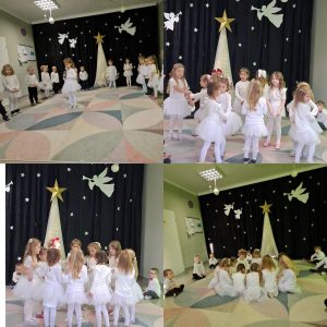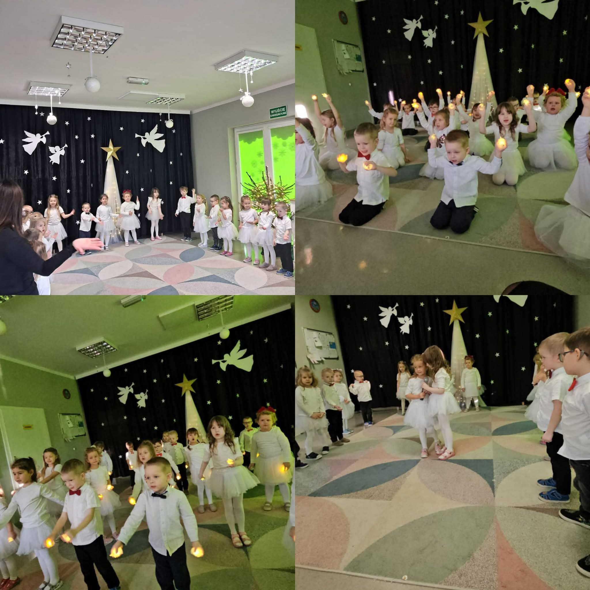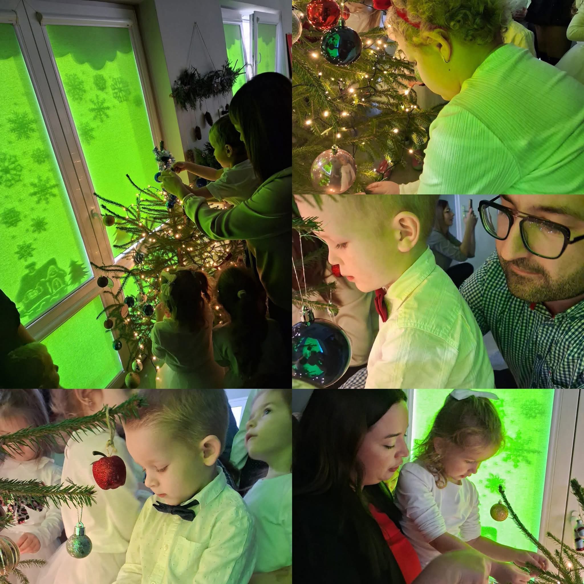 Wczoraj w grupie Pszczółki odbyło się wyjątkowe spotkanie świąteczne z rodzicami. Dzieci pięknie zaprezentowały się podczas występu wprowadzając wszystkich w magiczny, świąteczny nastrój. Dziewczynki zaprezentowały uroczy taniec do piosenki „Dwa białe aniołki”, a dzieci zatańczyły również taniec z lampkami, tworząc przepiękny, świetlny klimat. Na zakończenie występu przedszkolaki złożyły rodzicom świąteczne życzenia, co było niezwykle wzruszającym momentem. Po części artystycznej wspólnie z Rodzicami zaśpiewaliśmy kolędę „Przybieżeli do Betlejem pasterze”, a następnie przystąpiliśmy do ubierania choinki budując ciepłą i rodzinną atmosferę. Dziękujemy wszystkim Rodzicom za obecność, wsparcie i wspólne świętowanie. To był naprawdę wyjątkowy dzień! ✨🐝🎄