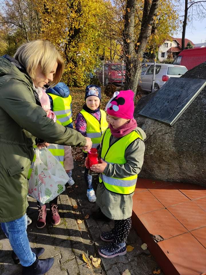 Dzieci z przedszkola wzięły udziału w akcji Ministerstwa Edukacji i Nauki „#Szkoła pamięta”. Dzieci upamiętniły ważne święto- „Święto wszystkich zmarłych” zapalając znicz na pomnikach . Udział w Akcji „Szkoła Pamięta”