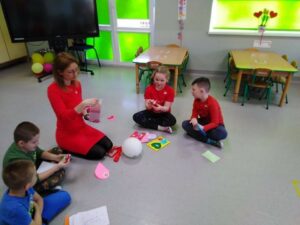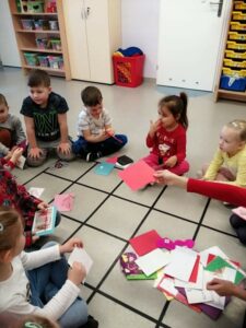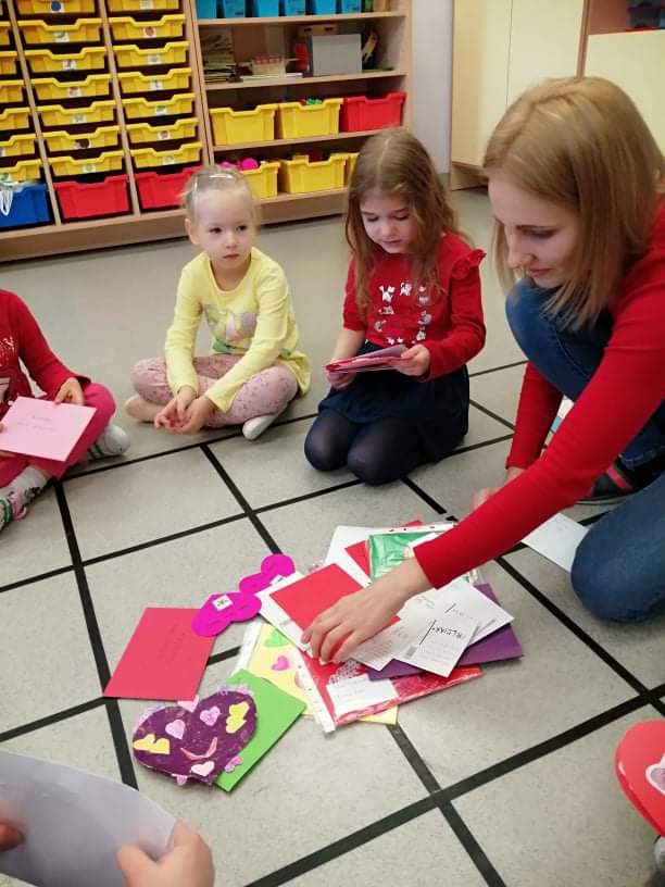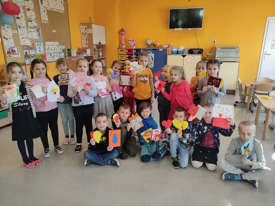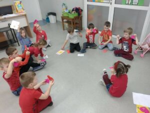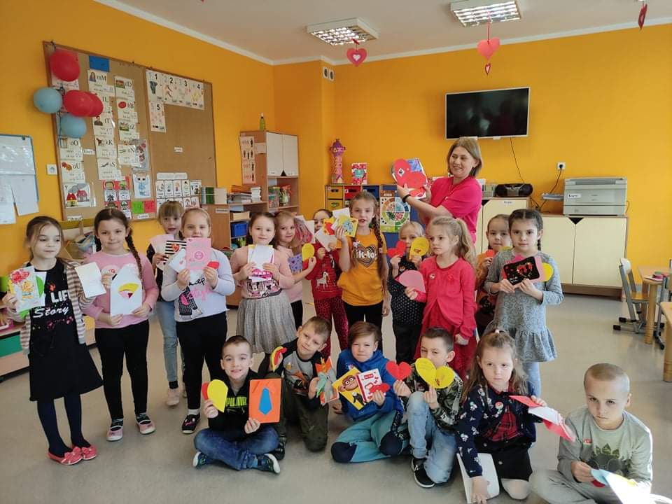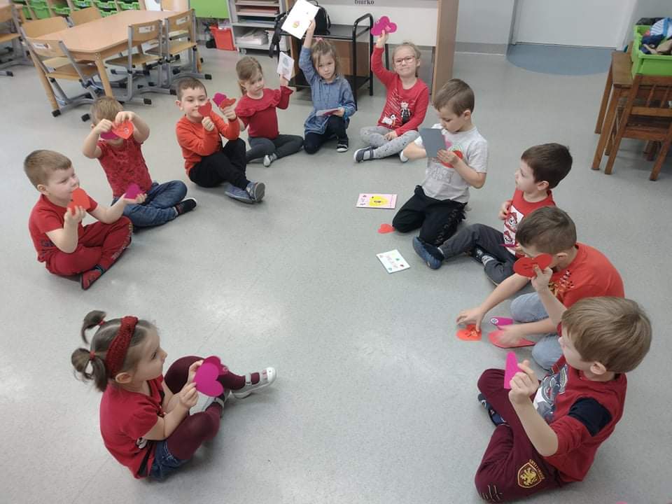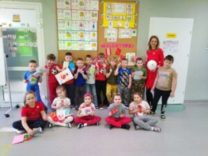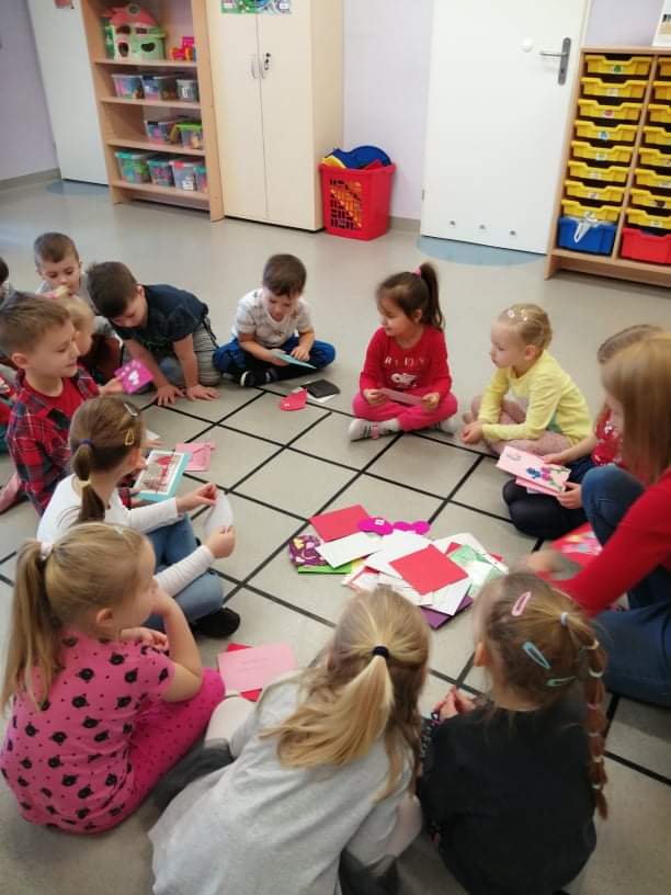 Dzień 14 lutego 2022 roku był dla naszych przedszkolaków prawdziwym, czerwonym dniem miłości i przyjaźni. Dzieci wzięły udział w Przedszkolnej Poczcie Walentynkowej. Do skrzynki walentynkowej wrzucali kartki dla osób, które lubią. Wspólnie z wychowawcami wzięły udział w różnych zabawach związanych z walentynkami m.in.: szukały drugiej połówki serca, rozwiązywały zagadki dotyczące bohaterów bajek, itp. Dzień Walentynowy z pewnością można zaliczyć do udanego. Był to dzień miłych wrażeń.