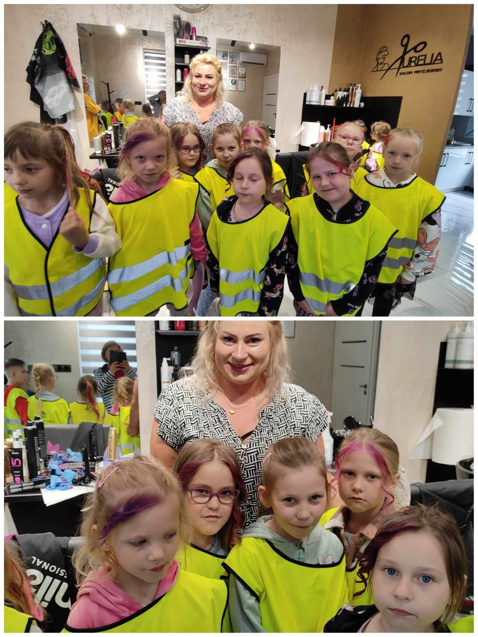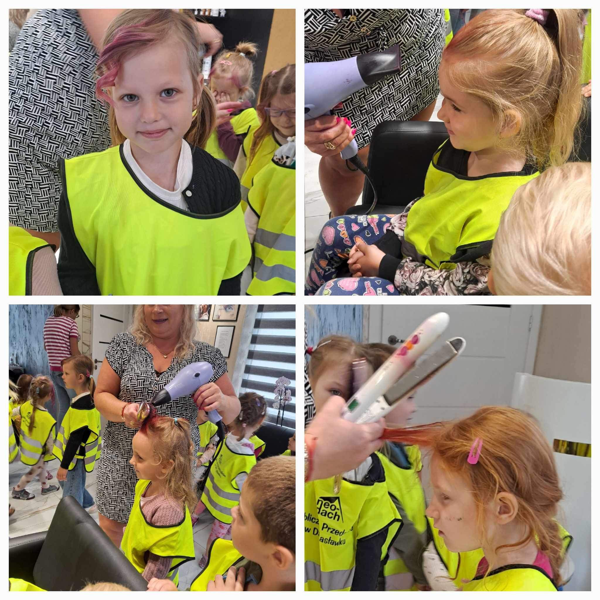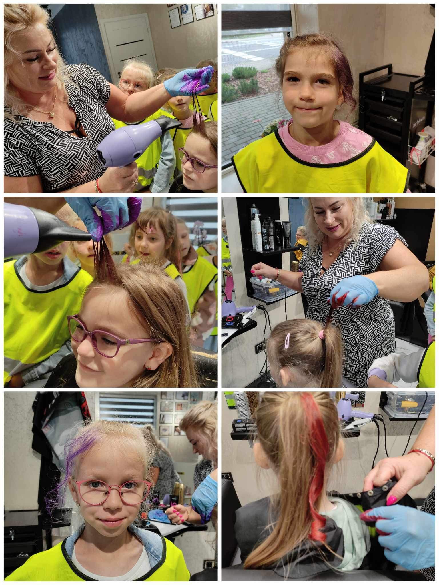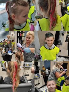 W poniedziałek 3 czerwca dzieci z grupy Misie i Kotki odwiedziły Aurelia Salon Fryzjerski. Celem wycieczki było zapoznanie dzieci z zawodem fryzjera oraz narzędziami, których używa podczas pracy. Niespodzianką dla chętnych dzieci było farbowanie włosów zmywalnymi lakierami.