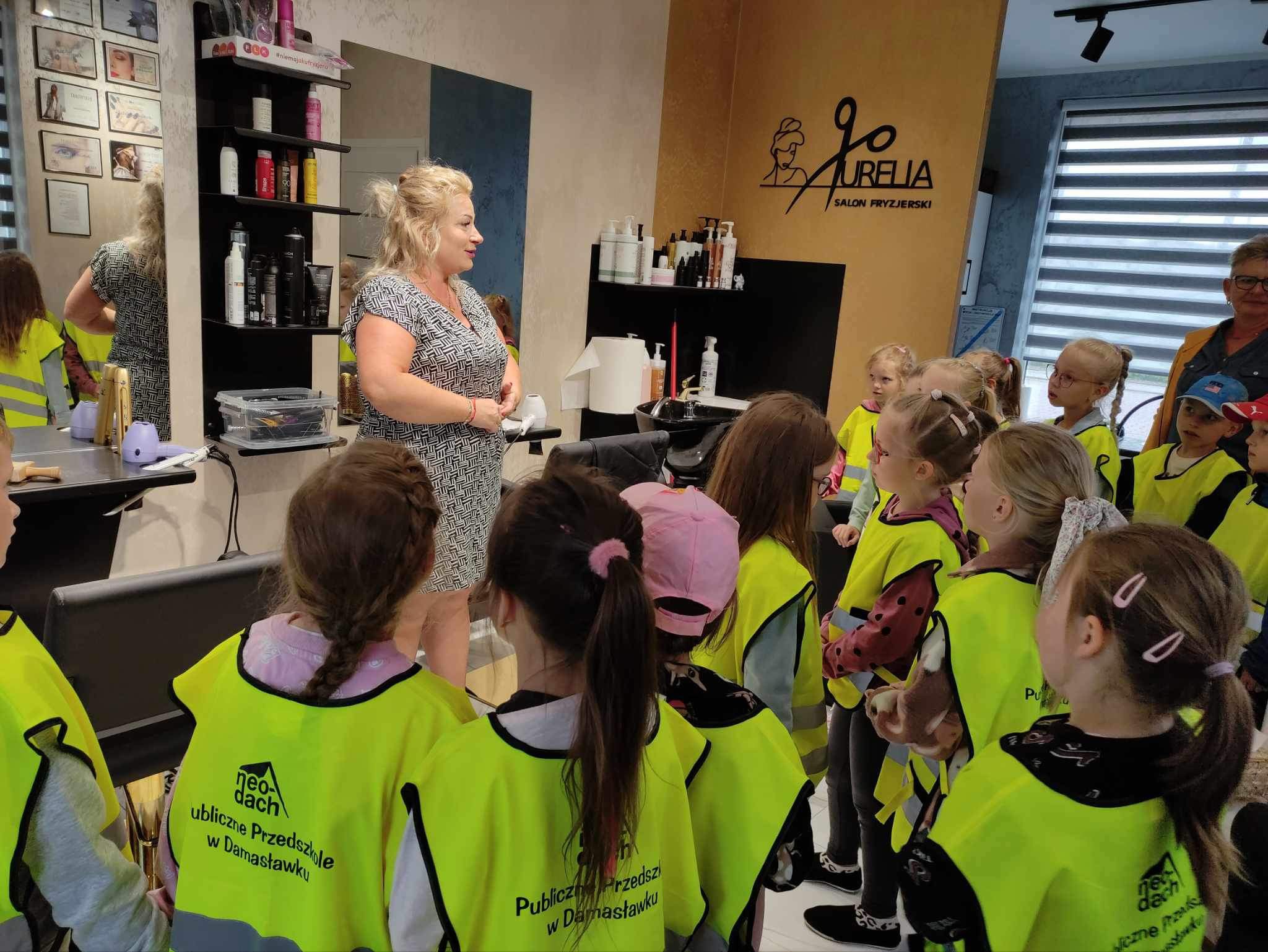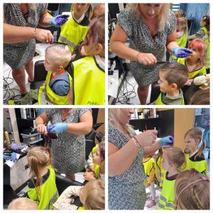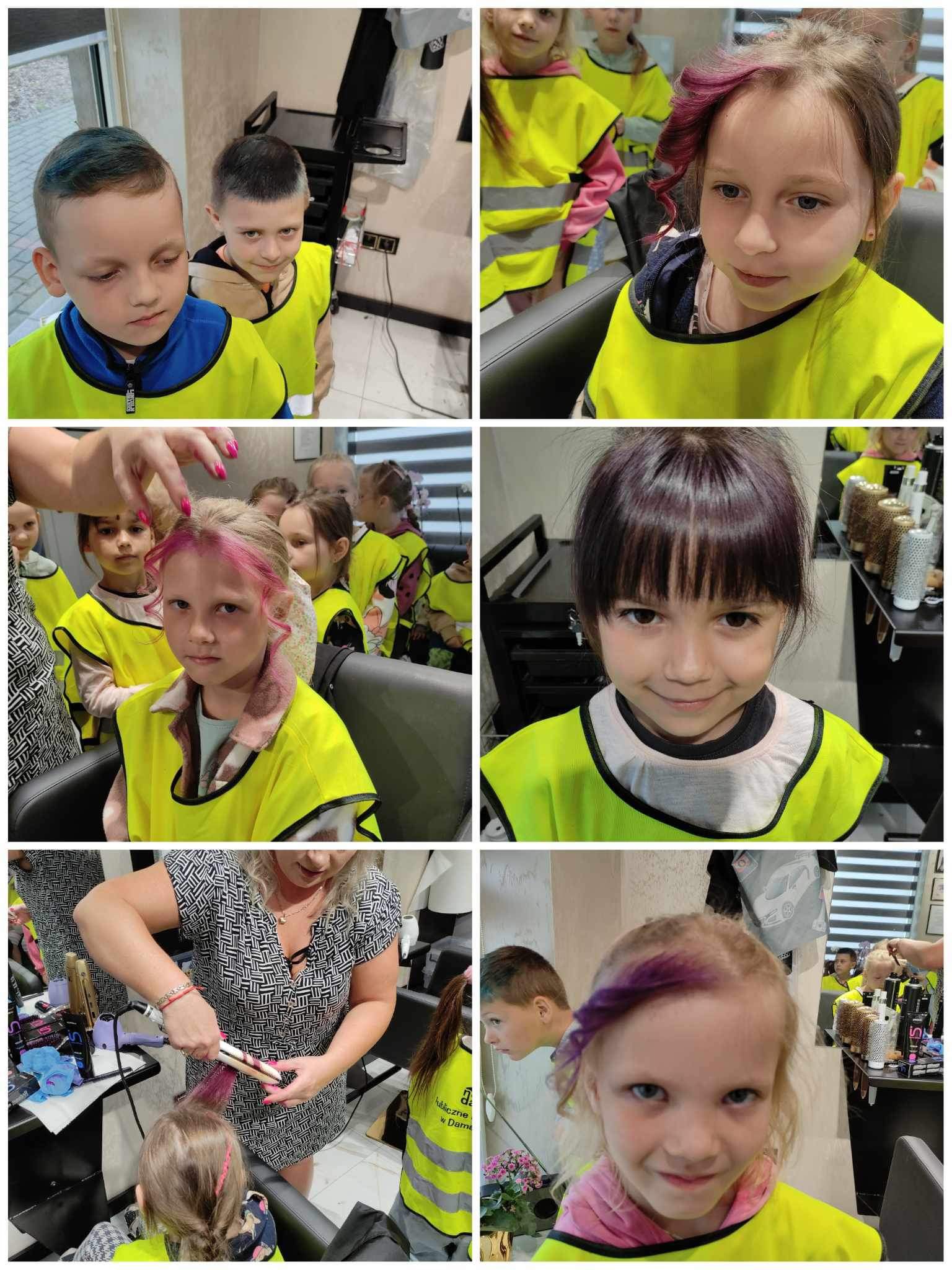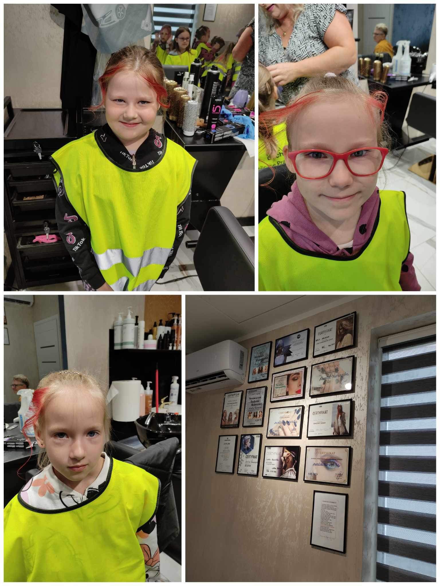 W poniedziałek 3 czerwca dzieci z grupy Misie i Kotki odwiedziły Aurelia Salon Fryzjerski. Celem wycieczki było zapoznanie dzieci z zawodem fryzjera oraz narzędziami, których używa podczas pracy. Niespodzianką dla chętnych dzieci było farbowanie włosów zmywalnymi lakierami.