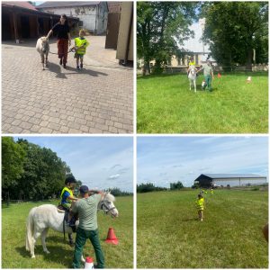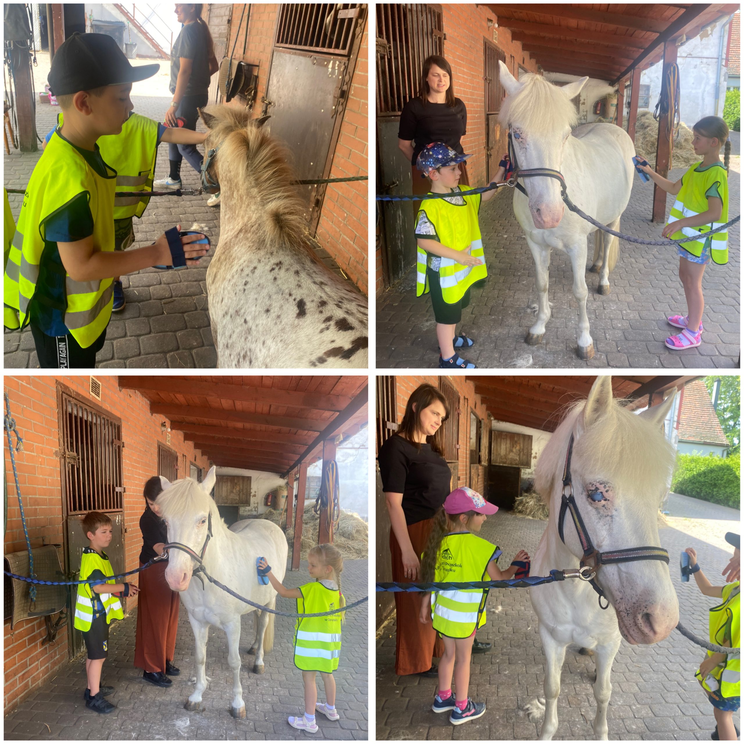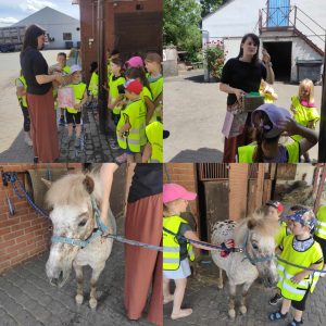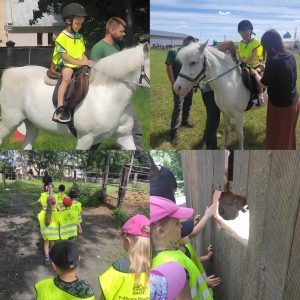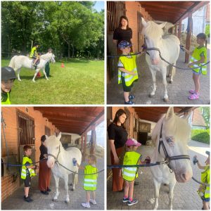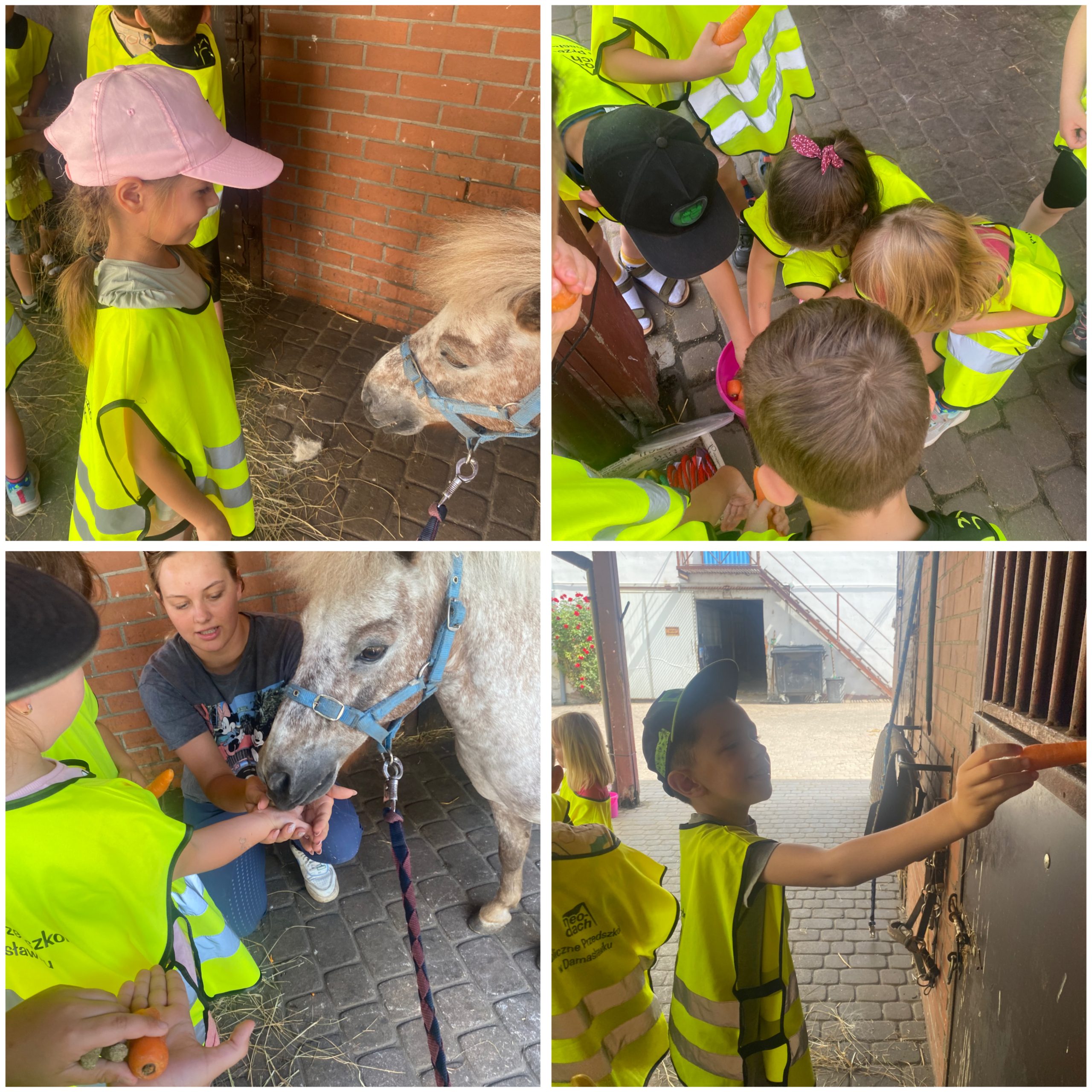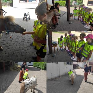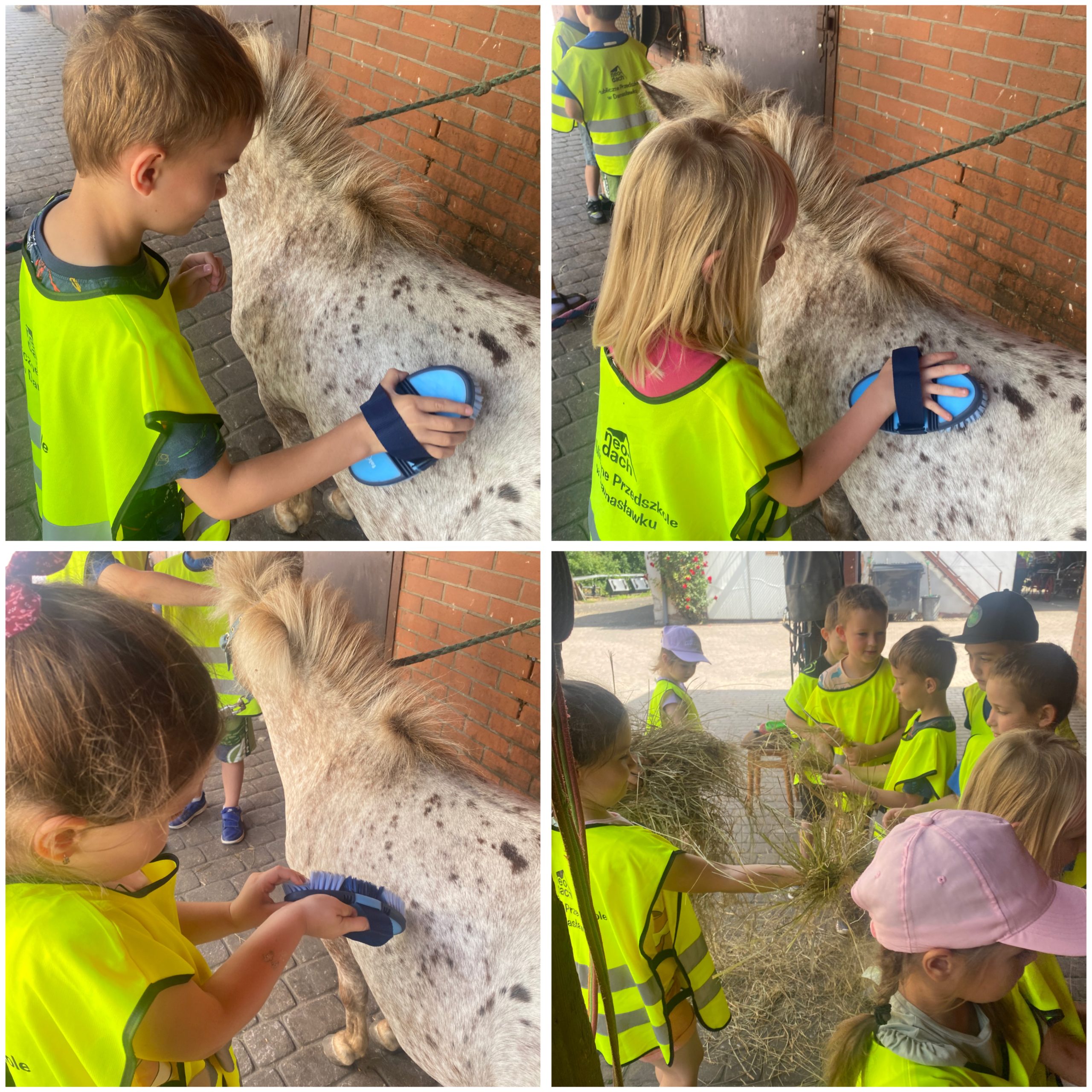 18 czerwca grupa „Pszczółki” wybrała się w odwiedziny do Państwa Jóźwiakowskich i Skrzypczak. Gdzie po gospodarstwie oprowadziła nas Pani Agnieszka. Pszczółki miały możliwość poznania kilku ciekawostek o koniach: co jedzą, jak mieszkają, skąd bierze się imię źrebaka, ile lat żyją, jak zajmować się koniem.