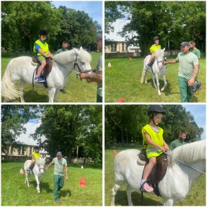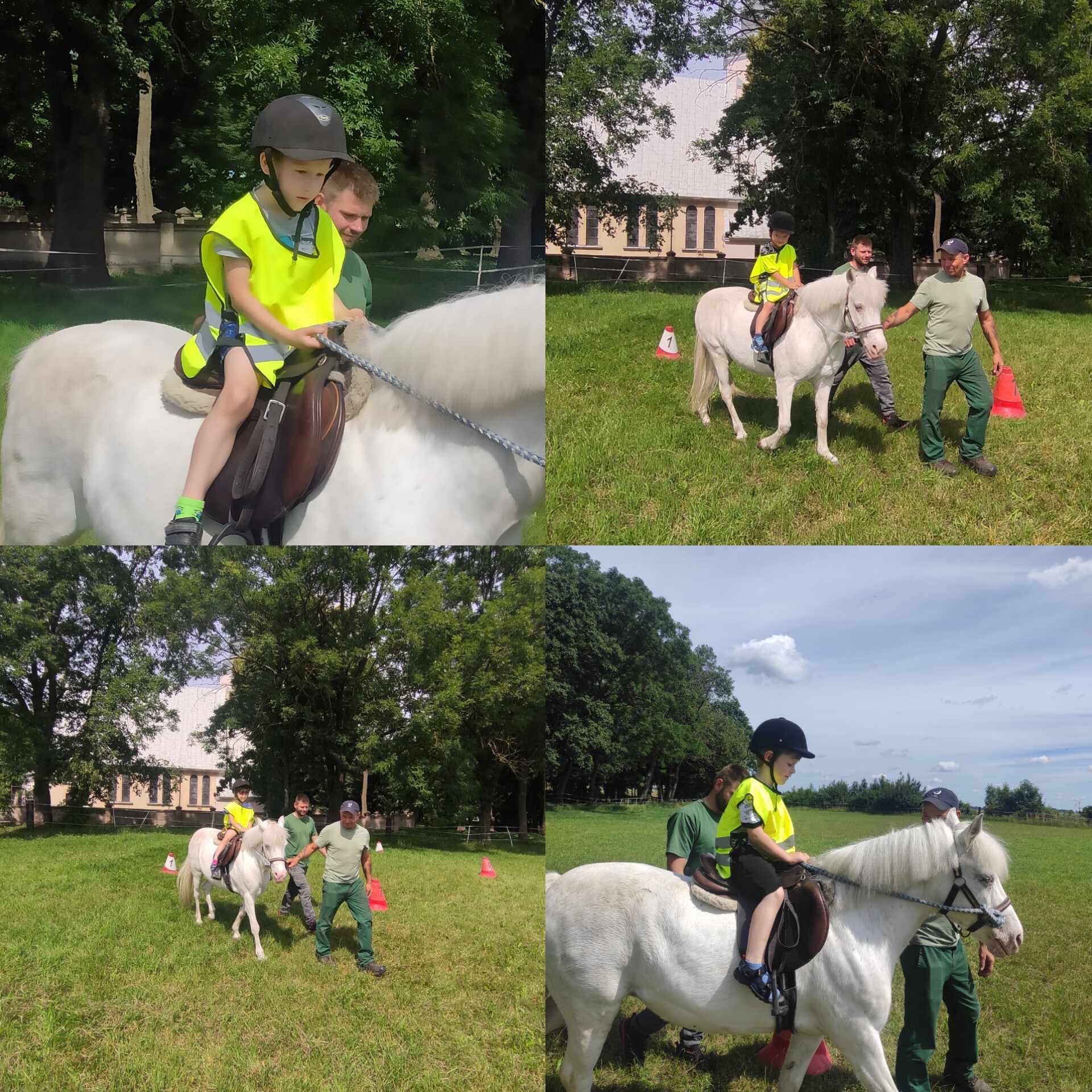 Największą frajdą dla dzieci było czyszczenie konia, karmienie koni ulubionymi łakociami, później przejażdżka.