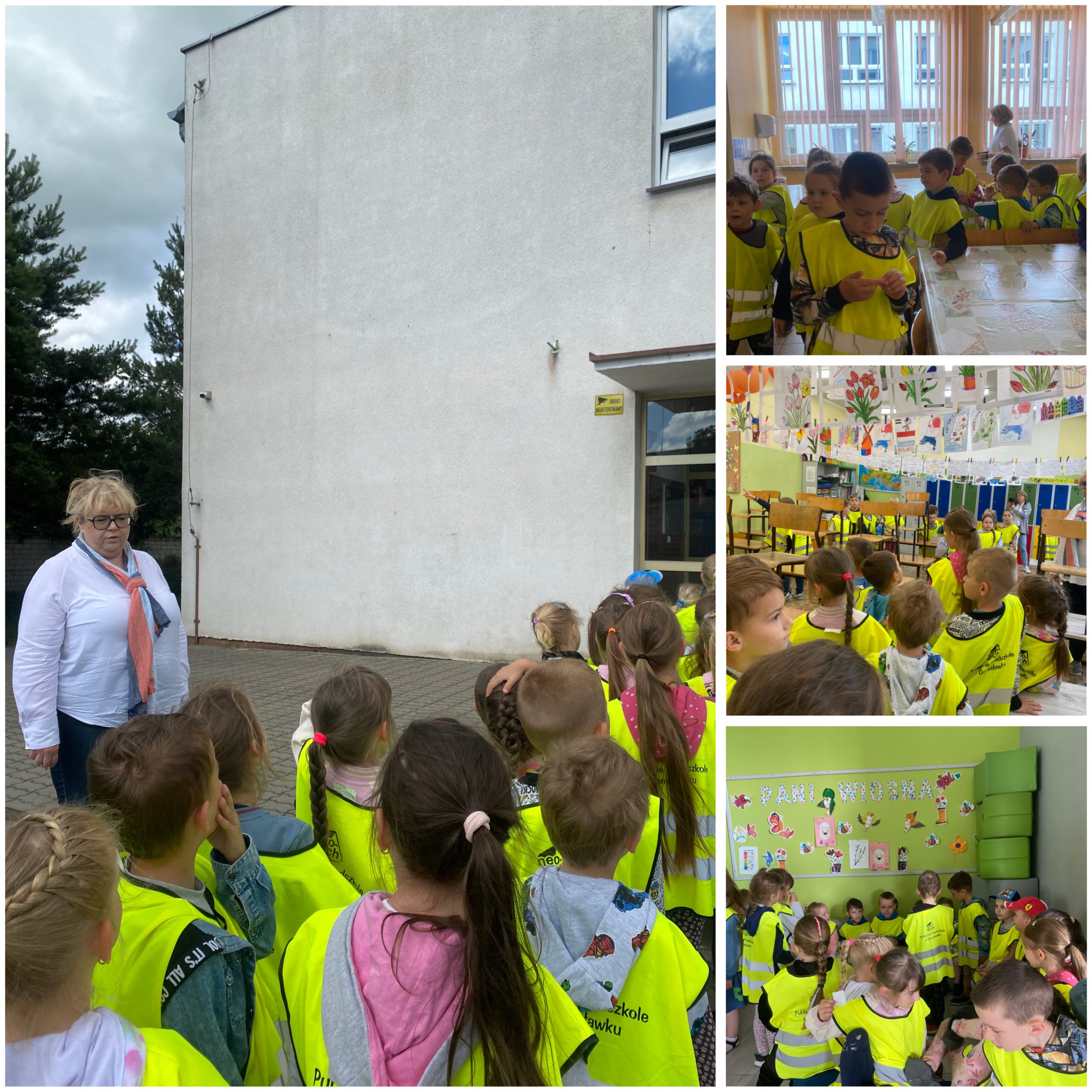 Dzieci z grup zerowych udały się do ZSP w Damasławku, gdzie zawsze uśmiechnięta Pani Aneta Kaiser oprowadziła dzieci po budynku szkoły. Pokazała dzieciom świetlicę, sale gimnastyczną, stołówkę, gabinet Pani sekretarki, pielęgniarki a także Pana Dyrektora.