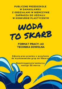 Serdecznie zapraszamy dzieci do udziału w konkursie plastycznym „Woda to skarb”.