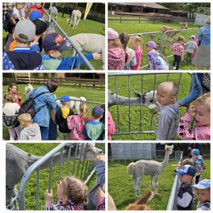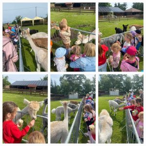Przedszkolaki z grupy Sówek i Słoneczek wybrały się na wycieczkę do Alpaki Poraja. Na początku zwiedziliśmy zagrodę alpak. Na początku wygłaskały króliczki, poznały koziołka Kazimierza, a następnie nakarmiły marchewką alpaki. Wzięliśmy udział w warsztatach plastyczno- technicznych, gdzie każde z dziecko kolorowało wybrane zwierzątko i ozdobiło drewnianą figurkę alpaki. Następna atrakcją była zabawa edukacyjna z Panią Lato – Bezpieczne Wakacje, gdzie dzieci miały okazję wykazać się wiadomościami na temat bezpieczeństwa w różnych sytuacjach, które mogą się wydarzyć podczas wakacji. Punktem kulminacyjnym naszego pobytu w Alpaki Poraja był czas na placu zabaw oraz poczęstunek. Obdarowane przez organizatorów upominkami dzieci podziękowały za mile spędzony czas, po czym wróciliśmy do przedszkola.