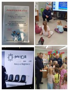 W czwartek, dnia 8 lutego Publiczne Przedszkole w Damasławku z oddziałami w Niemczynie odwiedzili dzielnicowi, asp. Jarosław Sytek i mł. asp. Bartosz Januchowski. Panowie policjanci przeprowadzili w naszym przedszkolu zajęcia profilaktyczne pt. ,,Bezpieczne ferie zimowe”. Dziękujemy za wizytę w naszym przedszkolu oraz przypomnienie zasad bezpieczeństwa podczas ferii zimowych. ⛄️❄️🛷